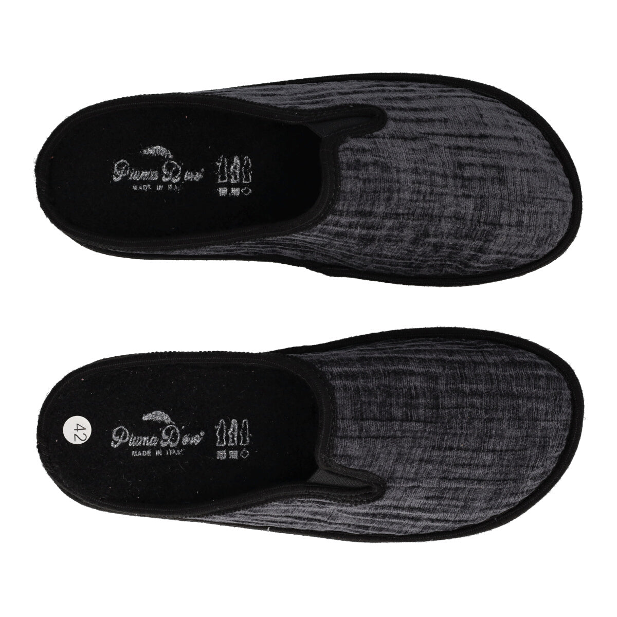 La ciabatta da uomo del brand Piuma d'Oro è pensata per offrire stile e benessere durante il tuo relax quotidiano. Realizzata con una suola antiscivolo, garantisce stabilità e sicurezza su ogni superficie, rendendola ideale per l'uso in casa.
