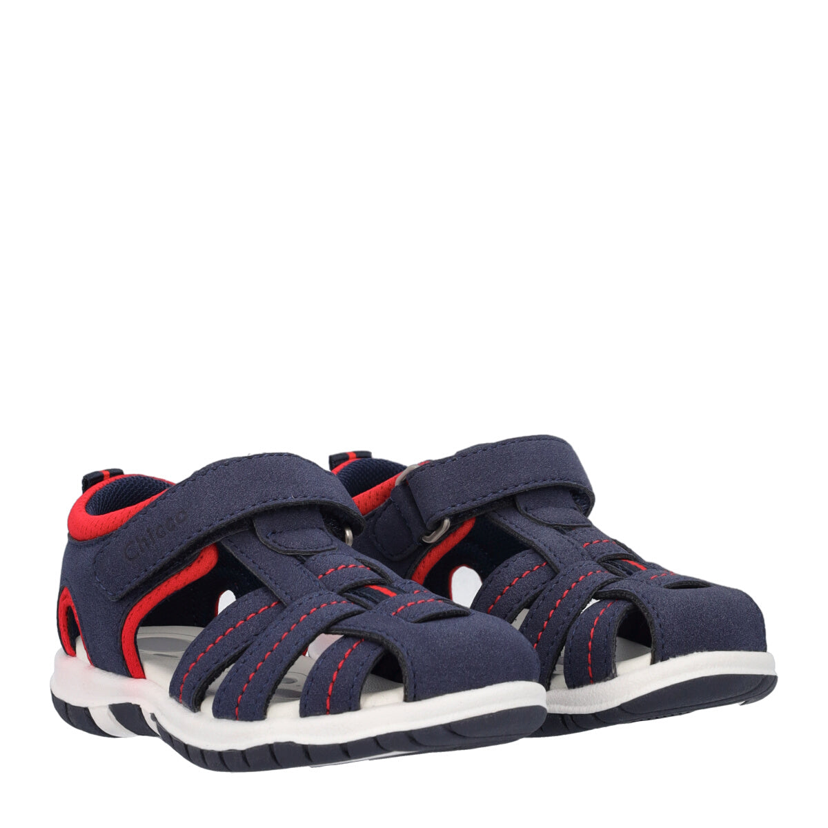 Sandalo Chicco blu e rosso con punta e talloni chiusi adatto per tutti i giorni.