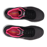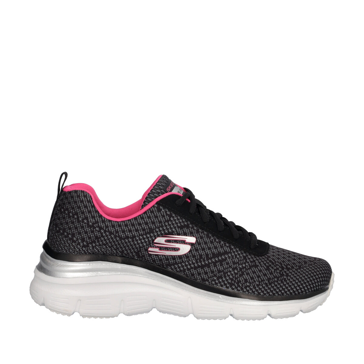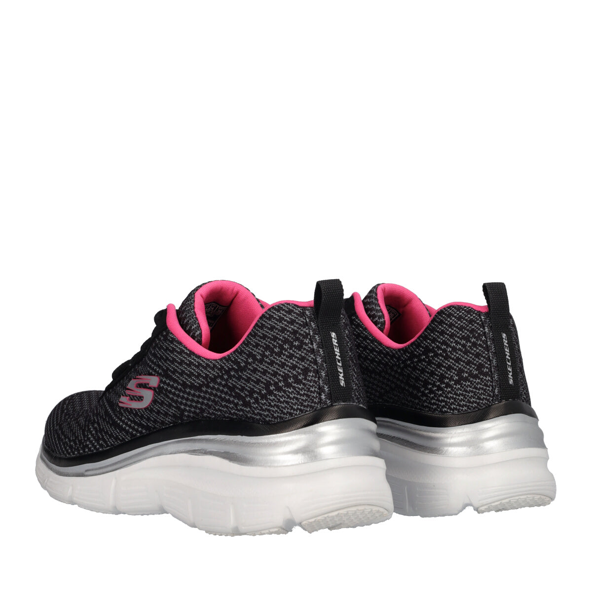 Le sneaker da donna Skechers presentano un design moderno e accattivante. La tomaia in tessuto nero melange è arricchita da dettagli in fucsia e argento, che creano un contrasto vivace e dinamico. La suola bianca, realizzata in gomma, garantisce una buona aderenza e stabilità. Queste scarpe sono realizzate in mesh traspirante e leggero, assicurando una perfetta ventilazione del piede. All'interno, la soletta in Memory Foam offre un comfort eccezionale, adattandosi alla forma del piede per un'ammortizzazione personalizzata. L'interno è anch'esso in tessuto, rendendo queste sneaker ideali per un utilizzo prolungato.