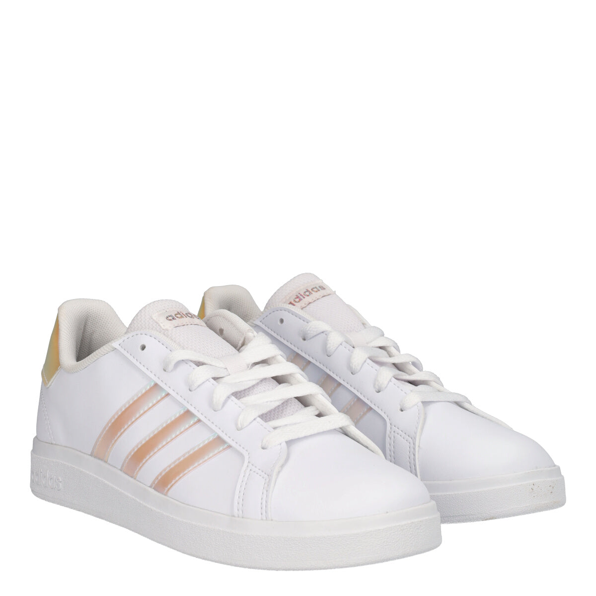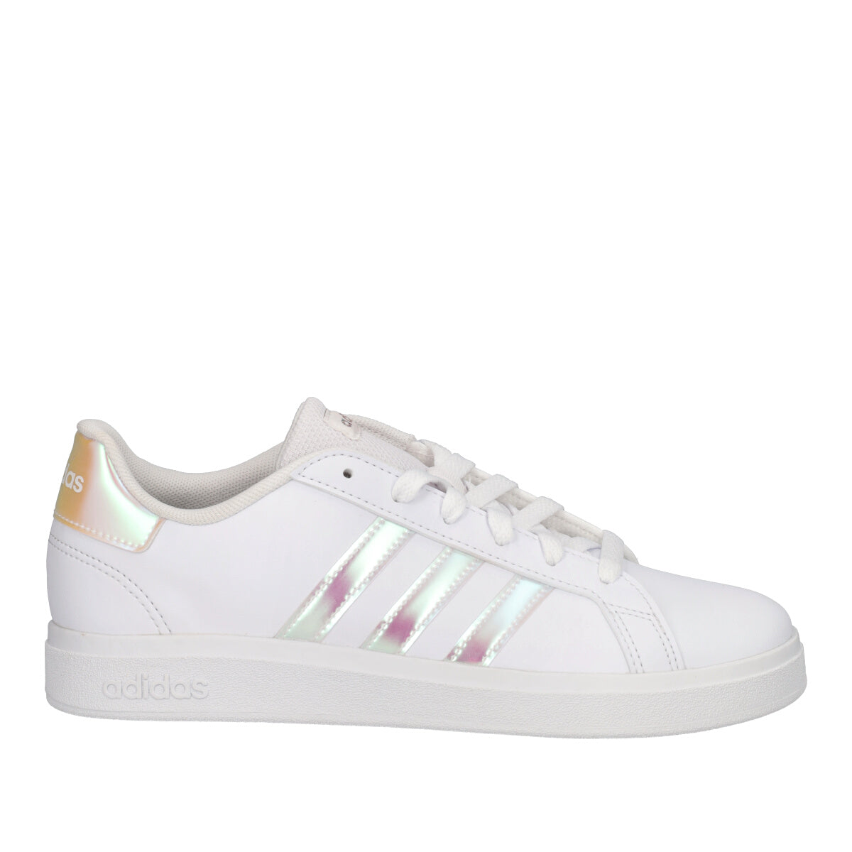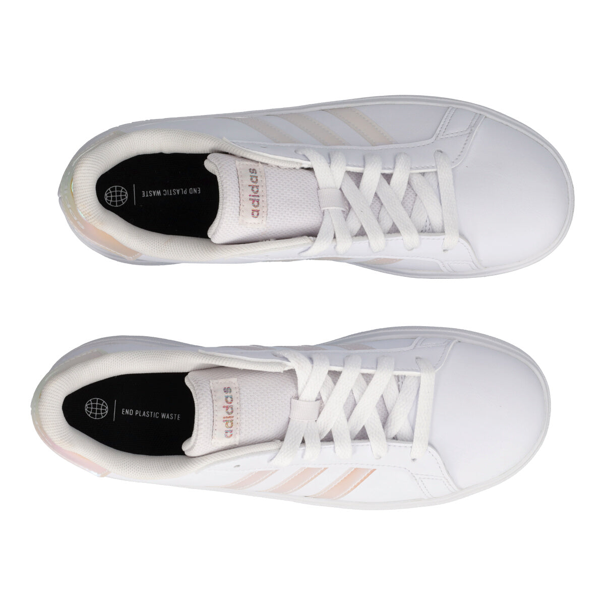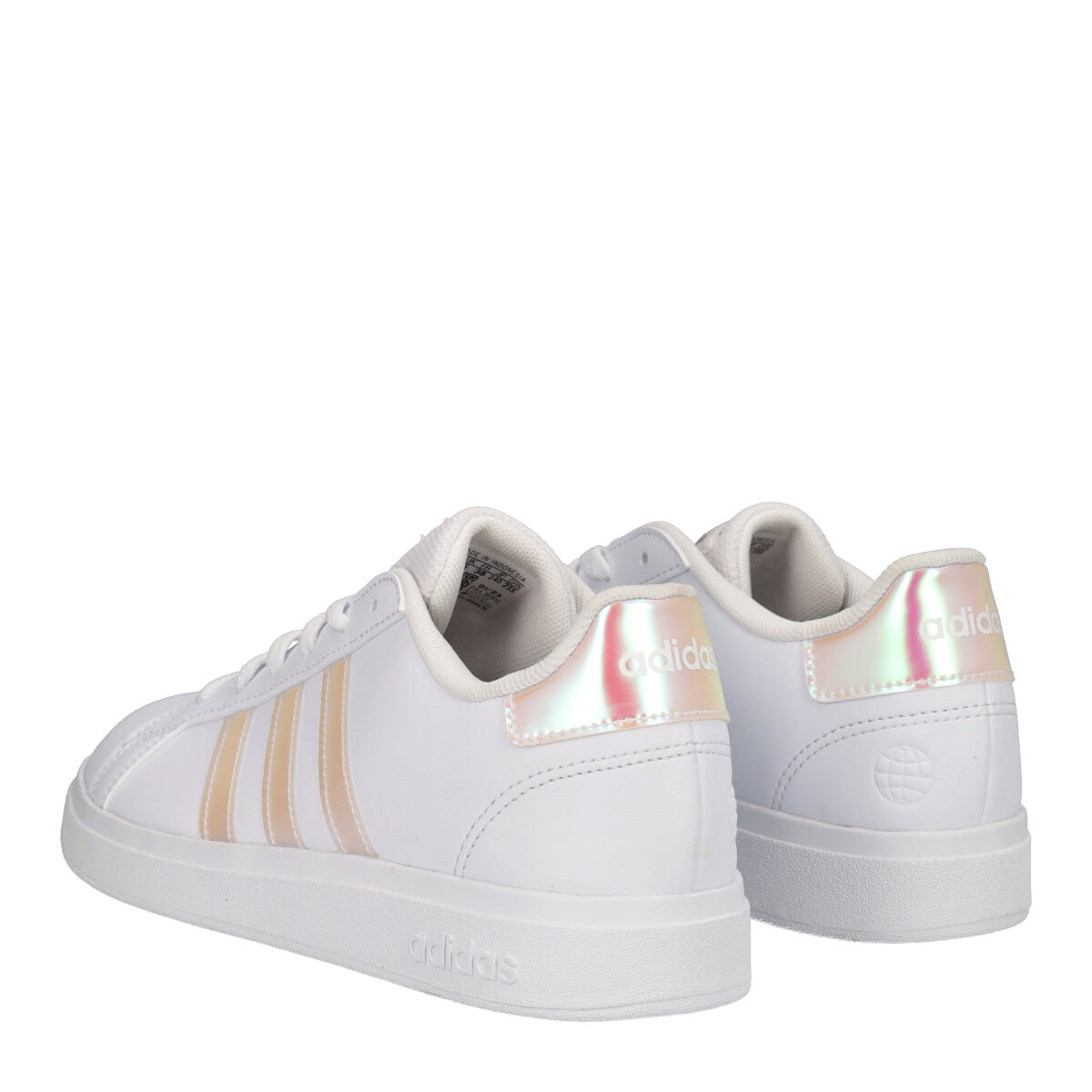 Comode, versatili e sostenibili, le ADIDAS GRAND COURT 2.0 K sono scarpe da bambino con uno stile iconico che si adatta a qualsiasi outfit. Hanno un'ammortizzazione "Cloudfoam Comfort" e sono realizzate per almeno il 50% da materiali riciclati. La calzata è regolare, con chiusura a lacci, tomaia in similpelle e fodera in tessuto. La suola è in gomma per una buona trazione.