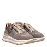 La sneaker del brand Keys è un modello moderno e pratico, pensato per chi cerca stile e funzionalità. La tomaia presenta un elegante effetto scamosciato, donando un aspetto sofisticato e alla moda. La scarpa è dotata di una doppia zip, che facilita la calzata e aggiunge un elemento di design distintivo. La chiusura avviene tramite lacci, arricchiti da due occhielli rinforzati in metallo per garantire resistenza e durata nel tempo. Sulla linguetta spicca il logo del brand, completando il look con un tocco di autenticità e riconoscibilità.