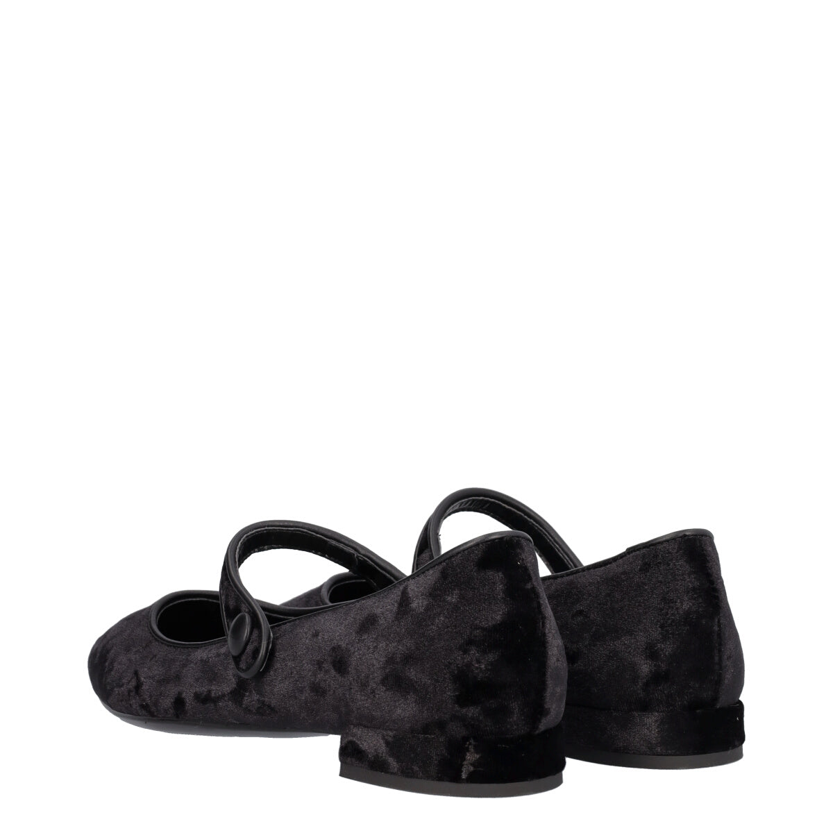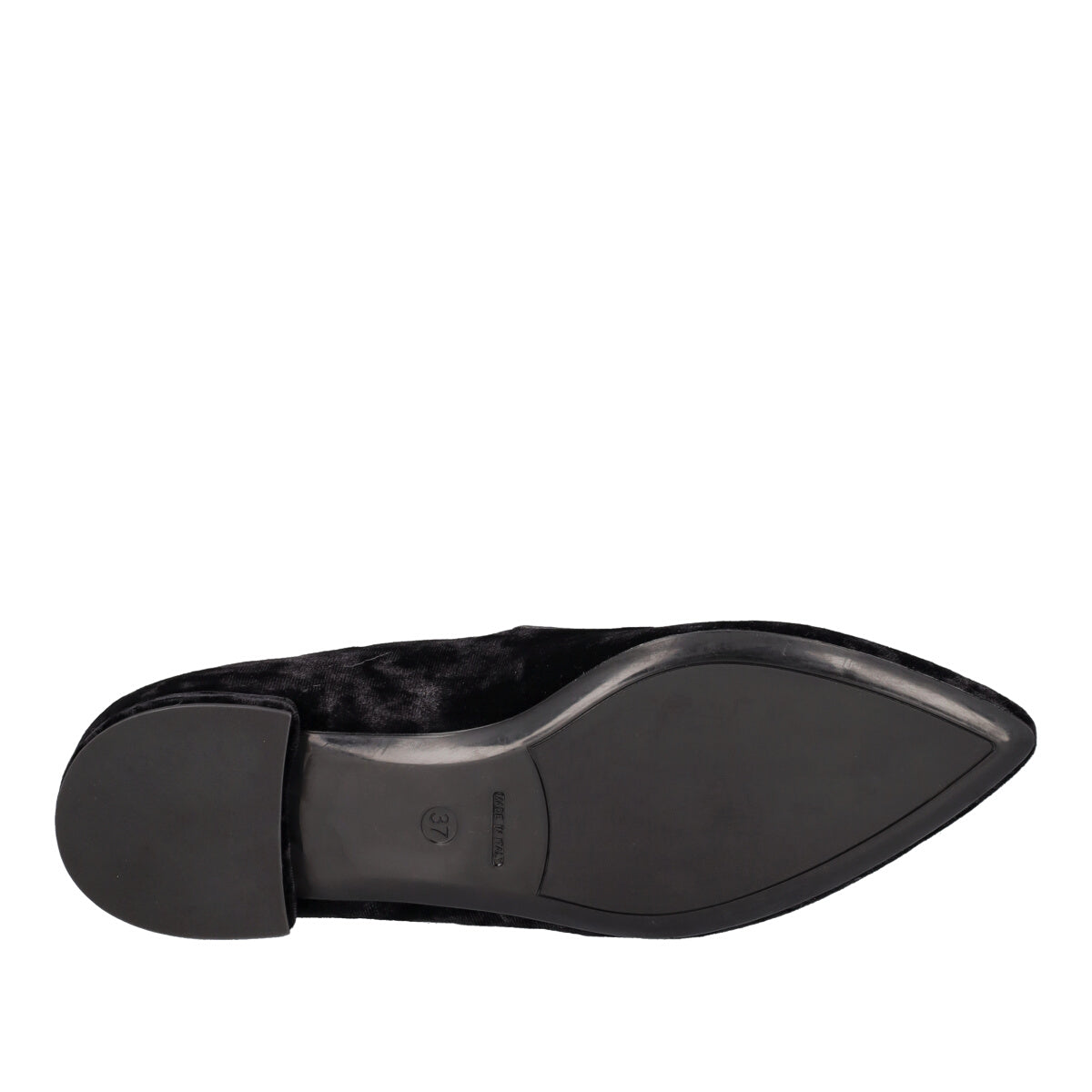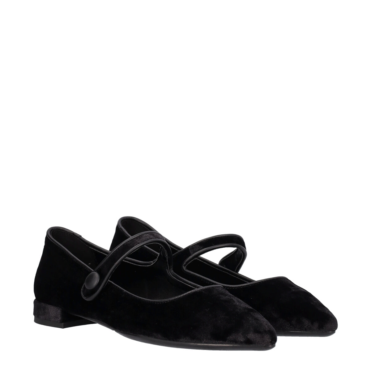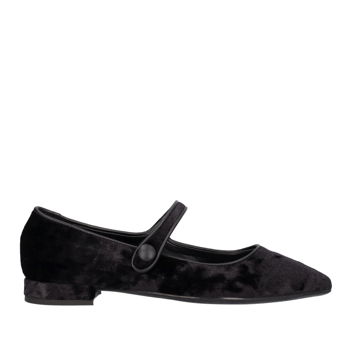 Ballerine donna in velluto nero con cinturino sul collo piede