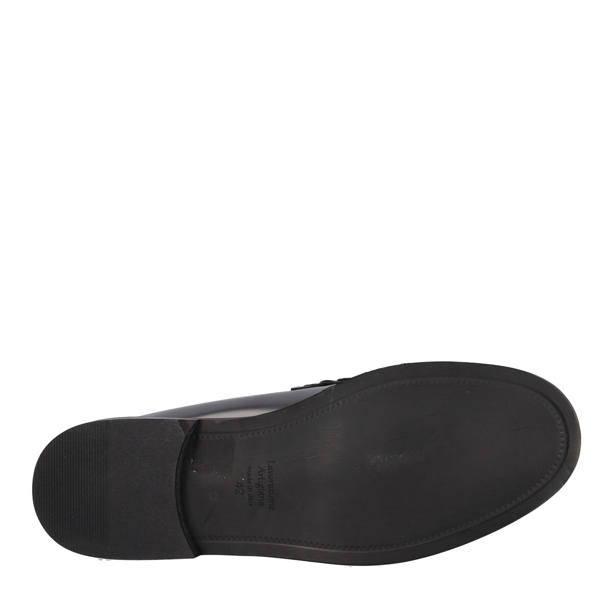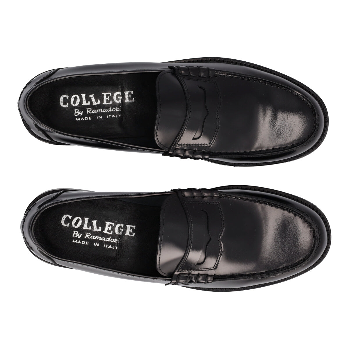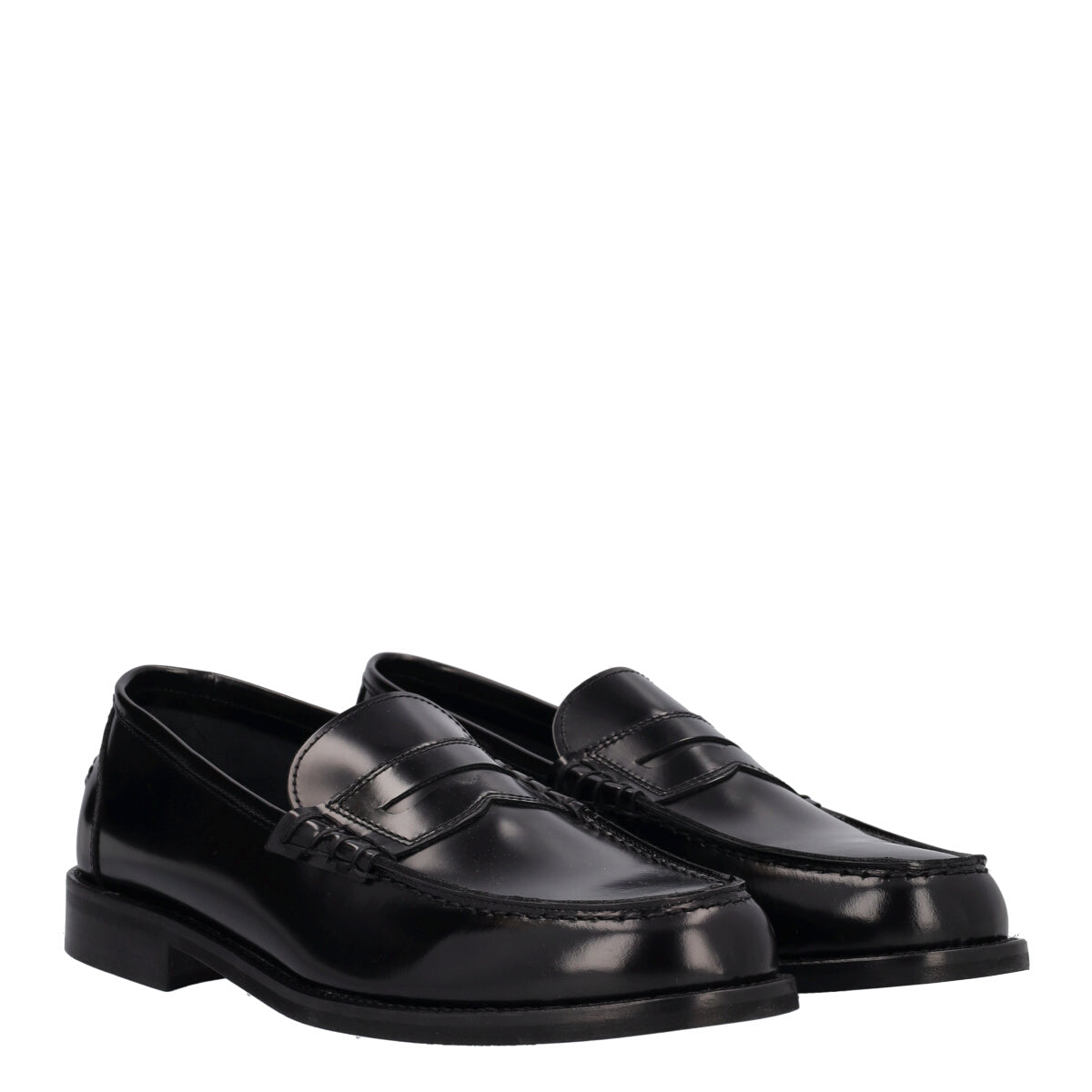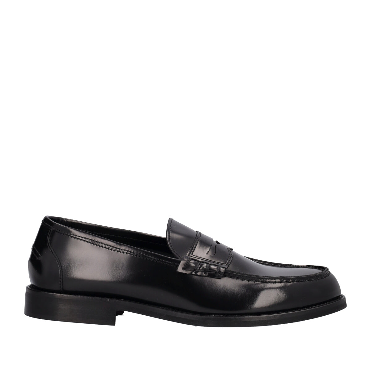 Mocassino nero dallo stile college da uomo in pelle liscia con cuciture a vista e dettaglio sulla parte frontale, fodera scamosciata, sottopiede in pelle e suola sintetica. Ideali per conferire personalità a look sia casual che formali.