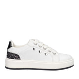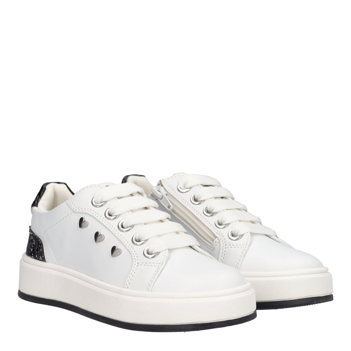 Queste sneakers da bambina del brand Asso combinano stile e praticità, con stringhe e una comoda zip laterale per una calzata facile. Il logo metallico sulla linguetta aggiunge un tocco distintivo, mentre il dettaglio di brillantini sul tallone dona una nota scintillante. L'interno in tessuto offre comfort e traspirabilità, mentre la suola platform in gomma garantisce stabilità e aderenza, ideali per ogni occasione.