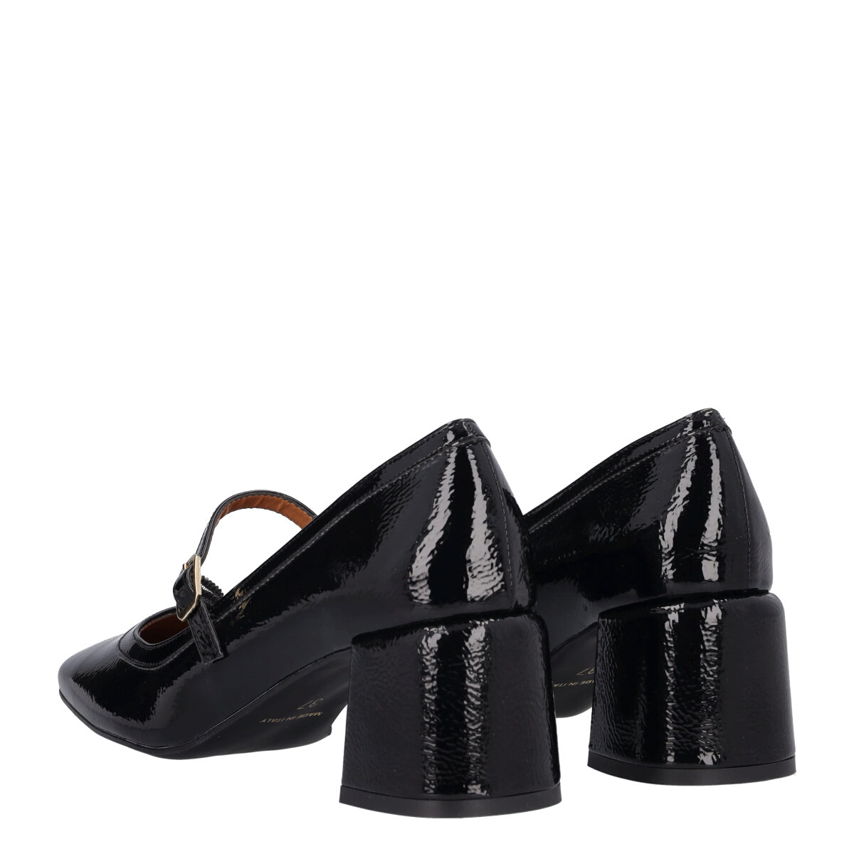 Le decolleté con tacco largo effetto vernice del brand Du Simon sono un esempio di eleganza e artigianalità Made in Italy. Queste scarpe sono caratterizzate da una finitura lucida che dona un tocco sofisticato e moderno, ideale per completare sia look da ufficio che outfit da sera. Il tacco largo offre un maggiore comfort e stabilità rispetto ai tacchi a spillo, rendendole perfette per essere indossate tutto il giorno. Il cinturino aggiunge un dettaglio raffinato e assicura una calzata sicura e confortevole.