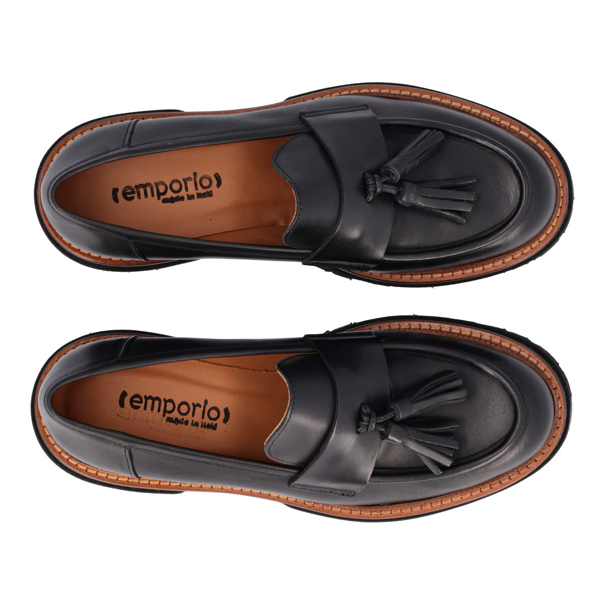 I mocassini del brand Emporio, realizzati in vera pelle, si distinguono per le eleganti nappine frontali che aggiungono un tocco sofisticato al design. Il sottopiede in vera pelle assicura un comfort superiore, mentre la suola platform in gomma offre stabilità e durabilità. Questi mocassini sono la scelta ideale per chi desidera unire stile raffinato e praticità quotidiana.