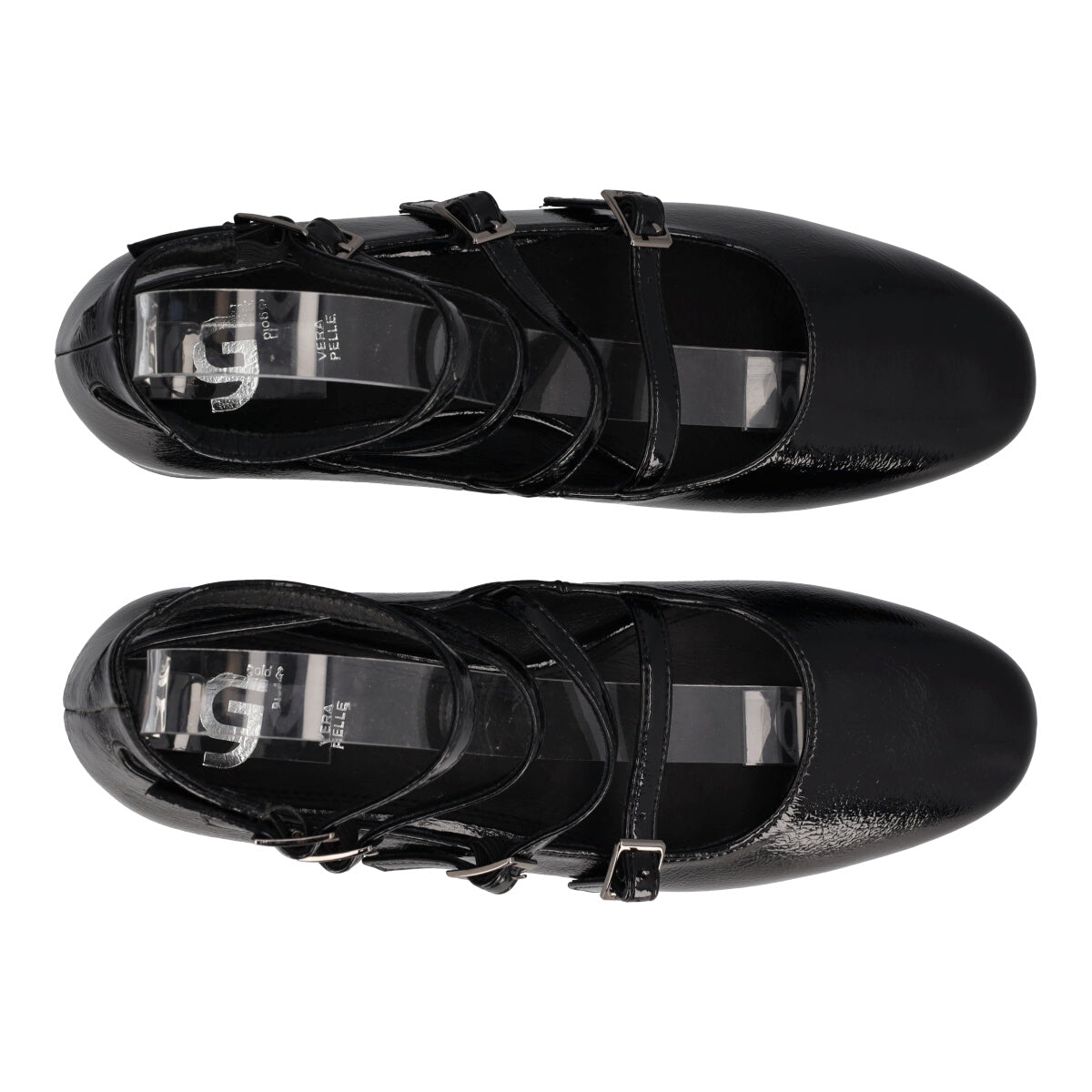 Le décolleté effetto vernice lucida del brand Gold&Gold incarnano uno stile audace e raffinato, perfetto per chi ama distinguersi con dettagli di carattere. Queste scarpe presentano tre cinturini con fibbia frontale, tutti regolabili, che avvolgono elegantemente il piede, offrendo una calzata sicura e personalizzabile. Il cinturino alla caviglia, anch'esso regolabile, aggiunge un ulteriore tocco di sofisticazione, garantendo un look chic e moderno. La finitura lucida in vernice dona una luminosità raffinata, ideale per serate speciali o occasioni formali. Il sottopiede in vera pelle assicura un comfort ottimale, permettendo di indossarle a lungo senza sacrificare il benessere del piede. Queste décolleté sono perfette per chi desidera combinare eleganza, comfort e uno stile distintivo.