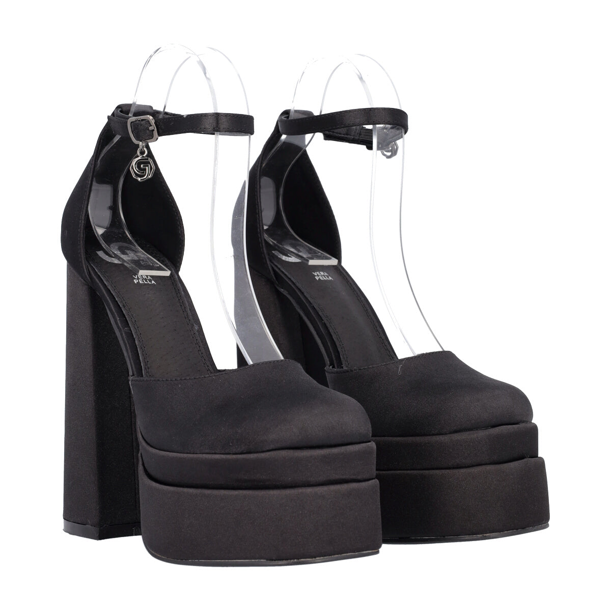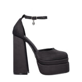 Décolleté da donna, simbolo indiscusso delle passerelle estive, in simil pelle caratterizzata dal tacco alto e largo e dal doppio plateau. Il cinturino regolabile alla caviglia è decorato con un ciondolo con logo Gold&Gold. Sottopiede in vera pelle e suola sintetica. Atezza tacco: 15 cm Altezza plateau: 5 cm