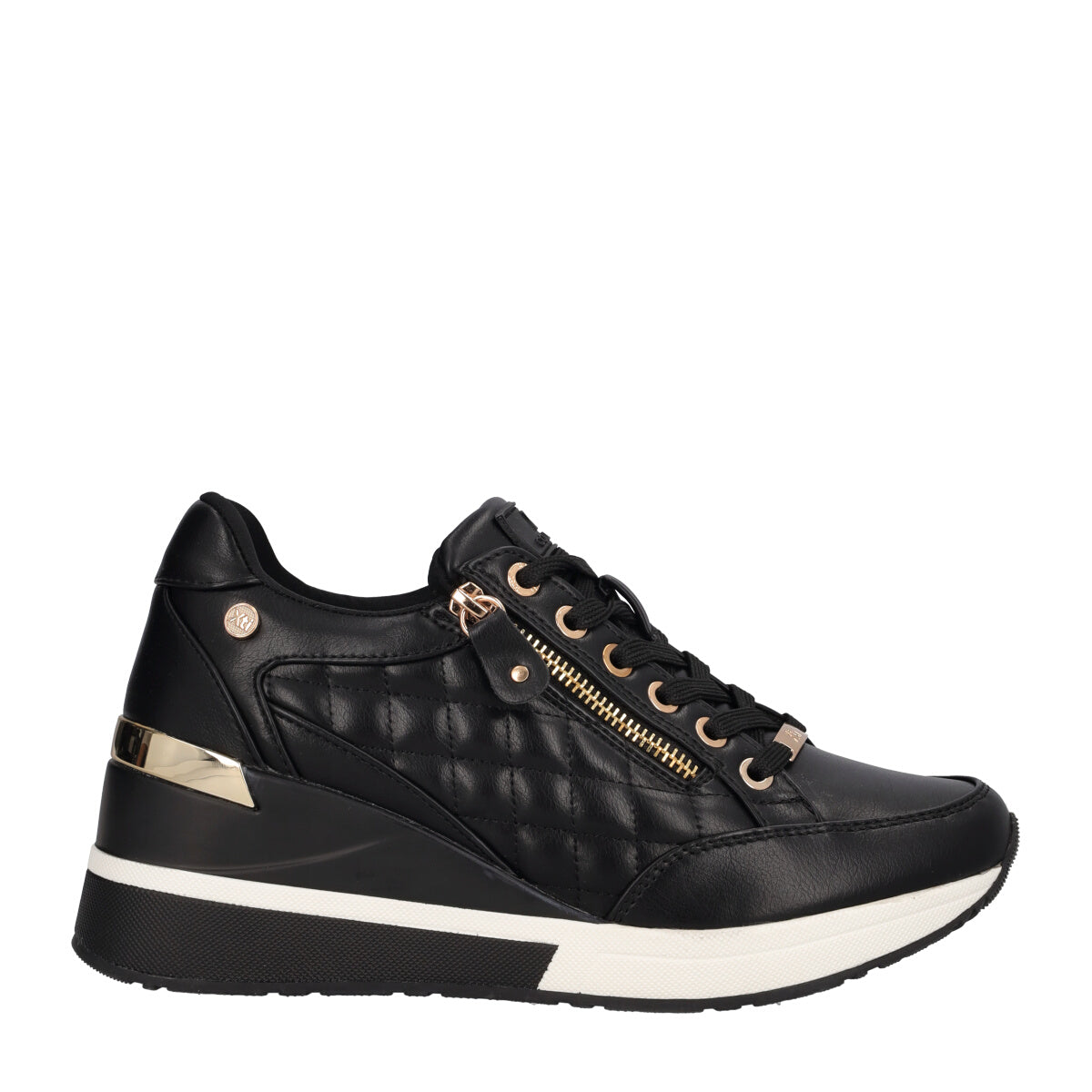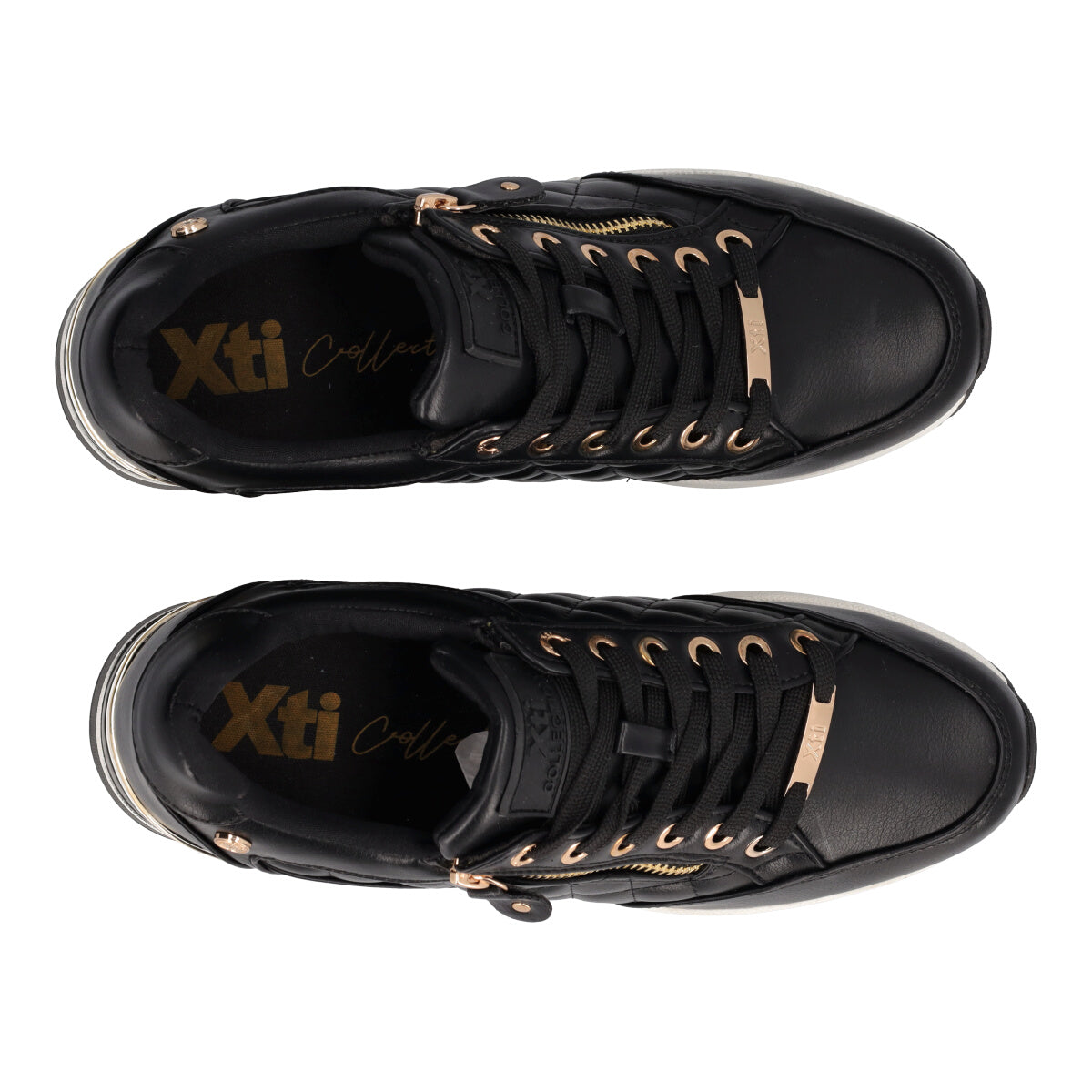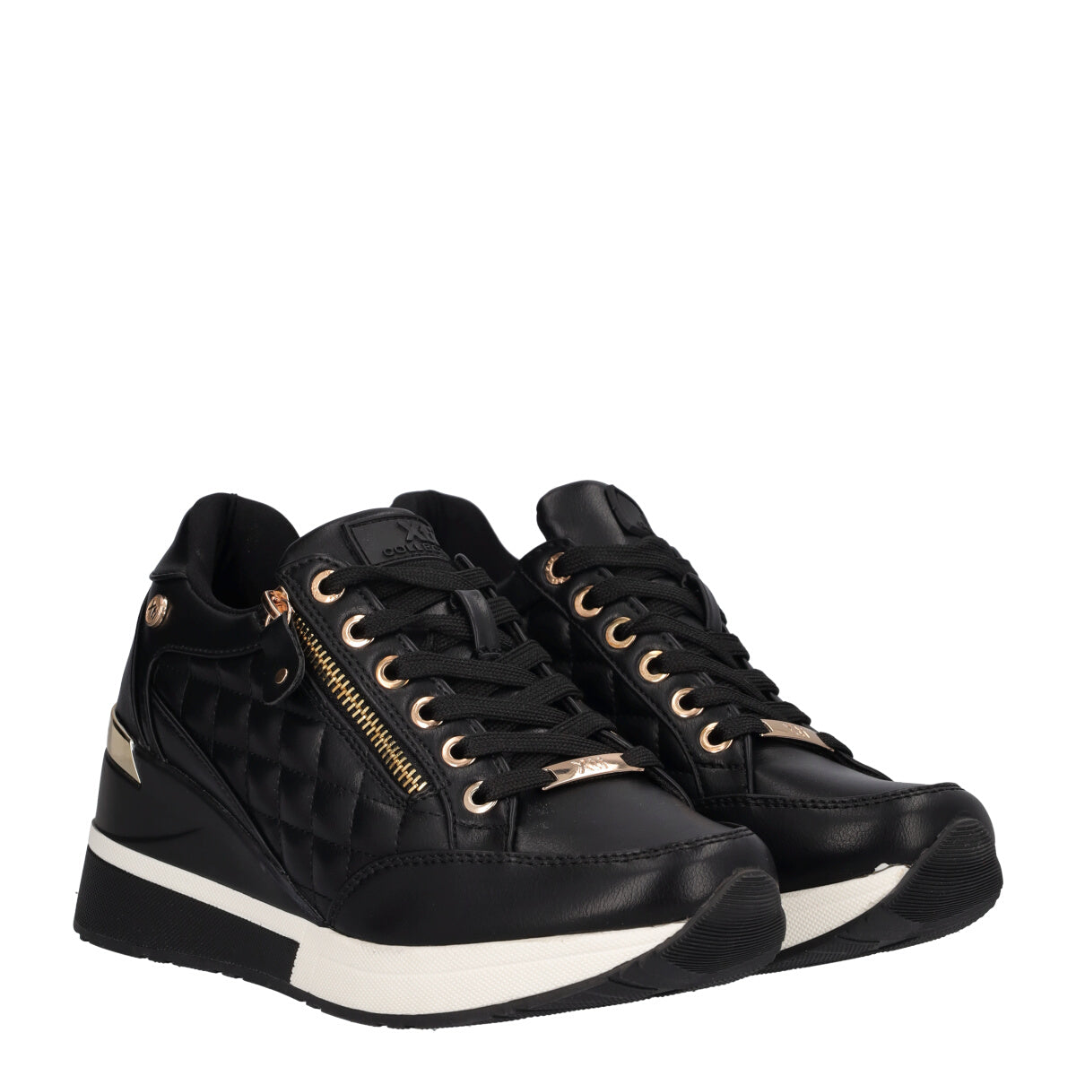 Sneaker da donna, del marchio Xti. Realizzato in materiale che imita la pelle con dettaglio imbottito. Chiusura con cerniera laterale e lacci per una buona vestibilità. Zeppa di 6 cm ideale per aggiungere qualche centimetro mantenendo un look casual. Suola in gomma antiscivolo. Questo modello ha ottenuto il certificato vegano dall'organizzazione mondiale PETA (Animal Rights Organization).