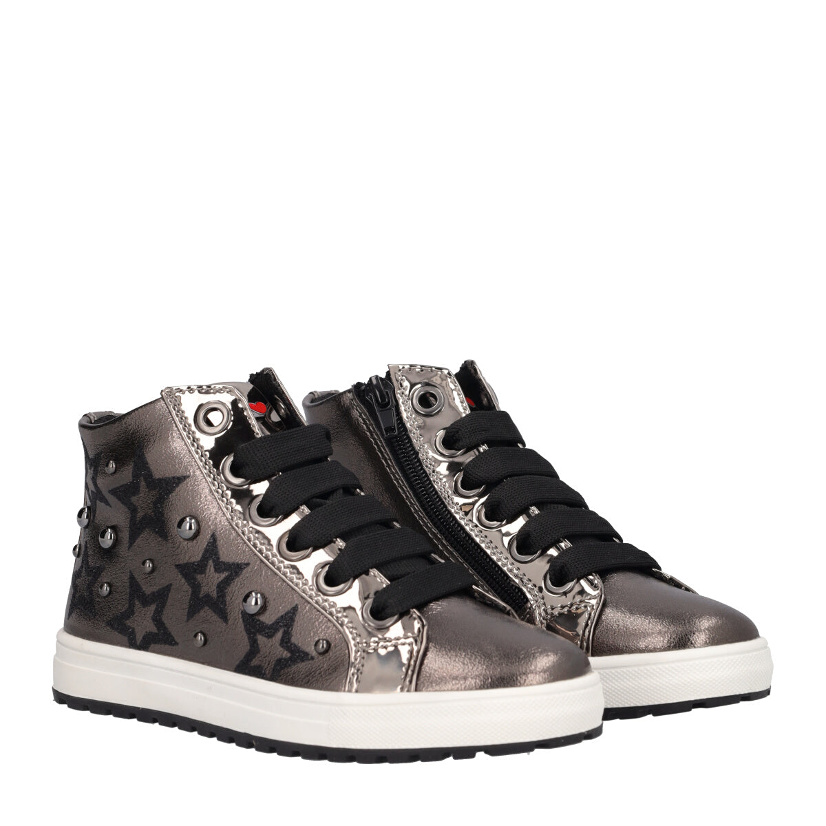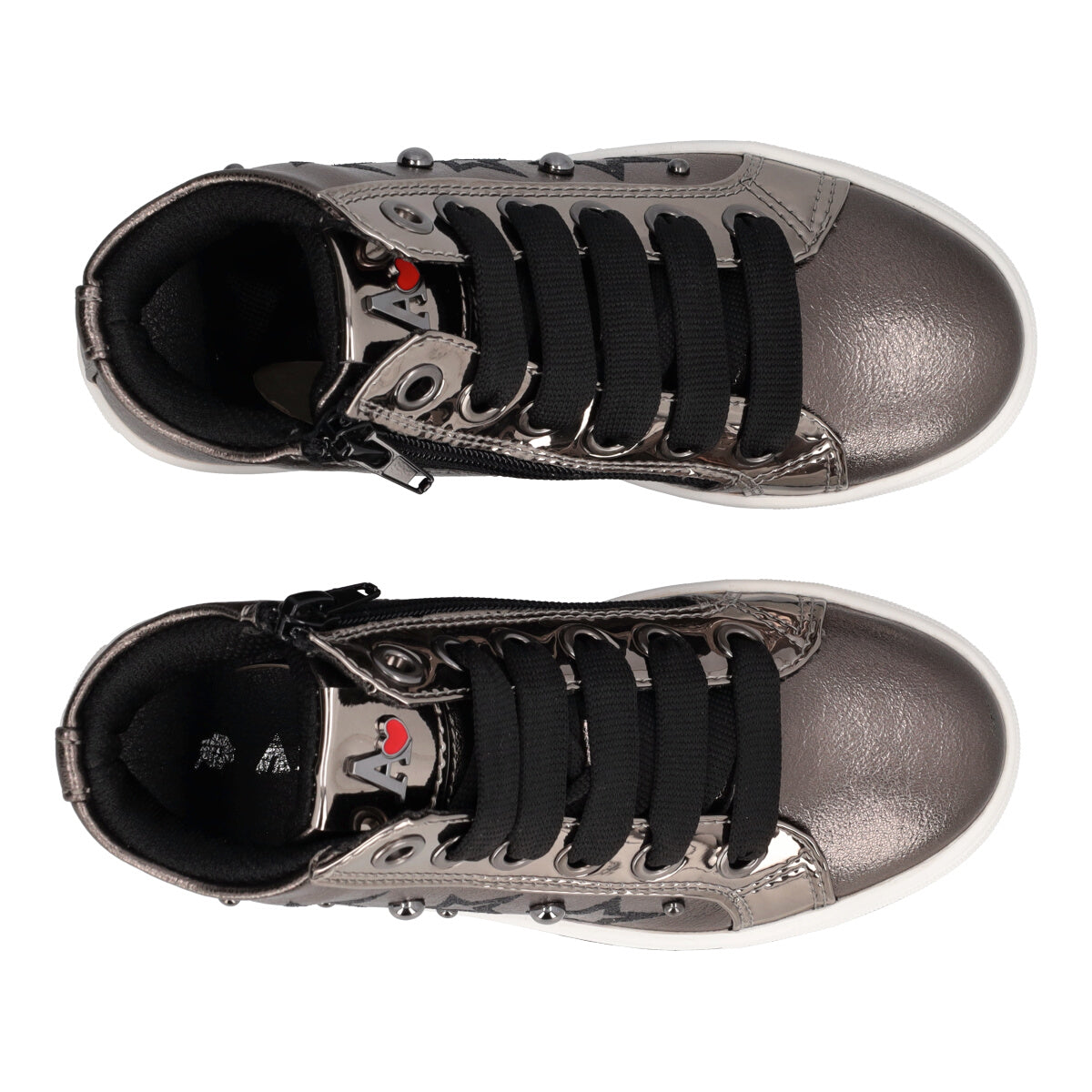 Le sneakers da bambina con platform del brand Asso offrono un look grintoso e alla moda. La tomaia presenta un elegante effetto metallizzato arricchito da borchie, aggiungendo un tocco di carattere e brillantezza. L'interno in tessuto assicura comfort durante tutto il giorno, mentre il platform in gomma offre maggiore altezza e una buona aderenza. Ideali per le bambine che desiderano un look distintivo e alla moda.