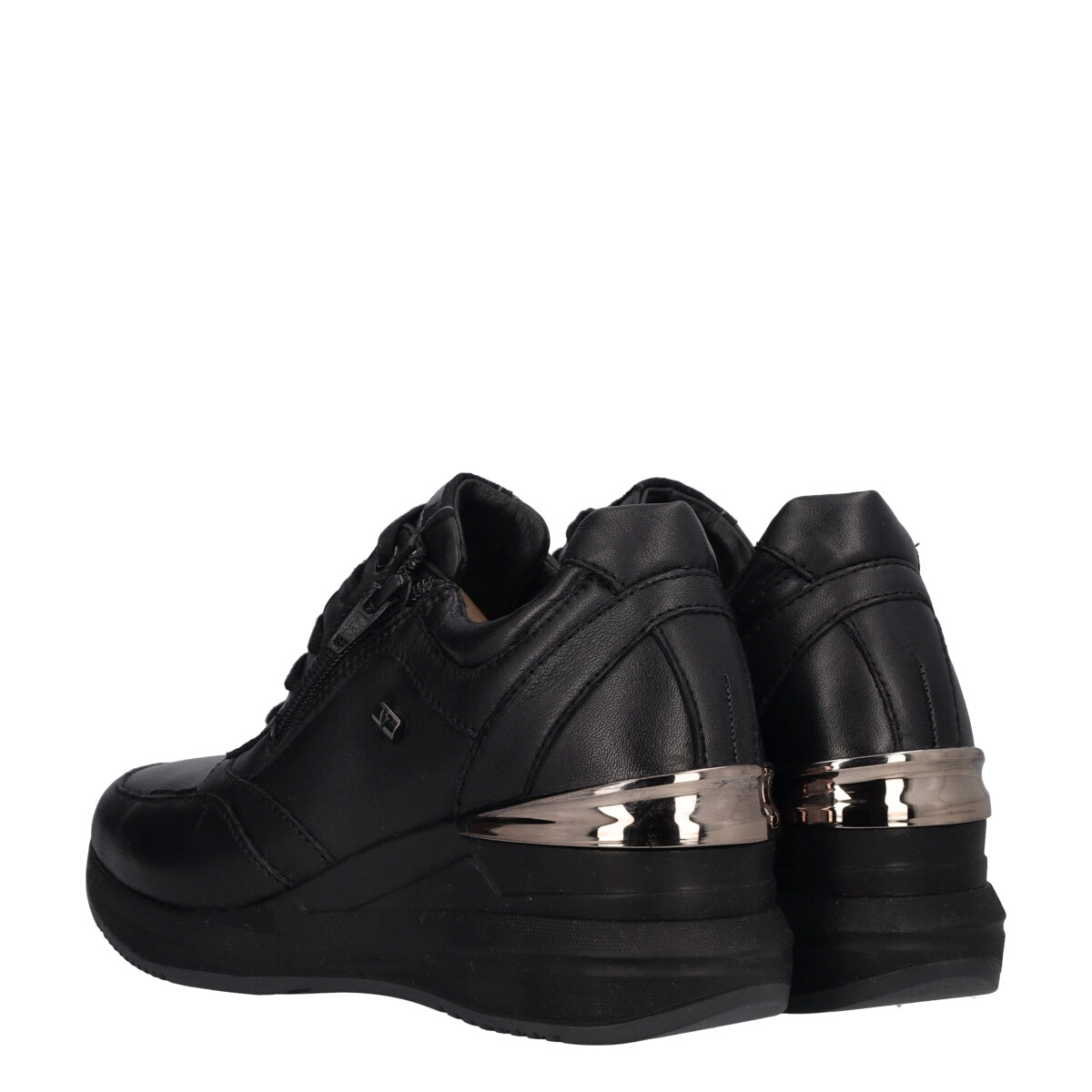Le sneakers Valleverde con zeppa sono il connubio perfetto tra stile, comfort e funzionalità. Realizzate in vera pelle di alta qualità, queste sneakers offrono una finitura elegante e resistente, adatta a molteplici occasioni. La zip laterale frontale aggiunge un tocco moderno e pratico, facilitando la calzata. Il sottopiede estraibile in vera pelle, dotato di memory foam, si adatta perfettamente alla forma del piede, garantendo un comfort personalizzato e un'ammortizzazione ottimale. La suola in gomma offre un'ottima trazione e stabilità, mentre la zeppa integrata dona altezza e slancio senza sacrificare la comodità. Perfette per un look casual-chic che non rinuncia al benessere del piede.