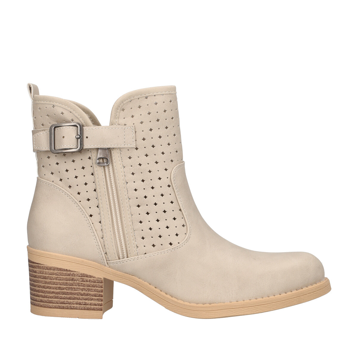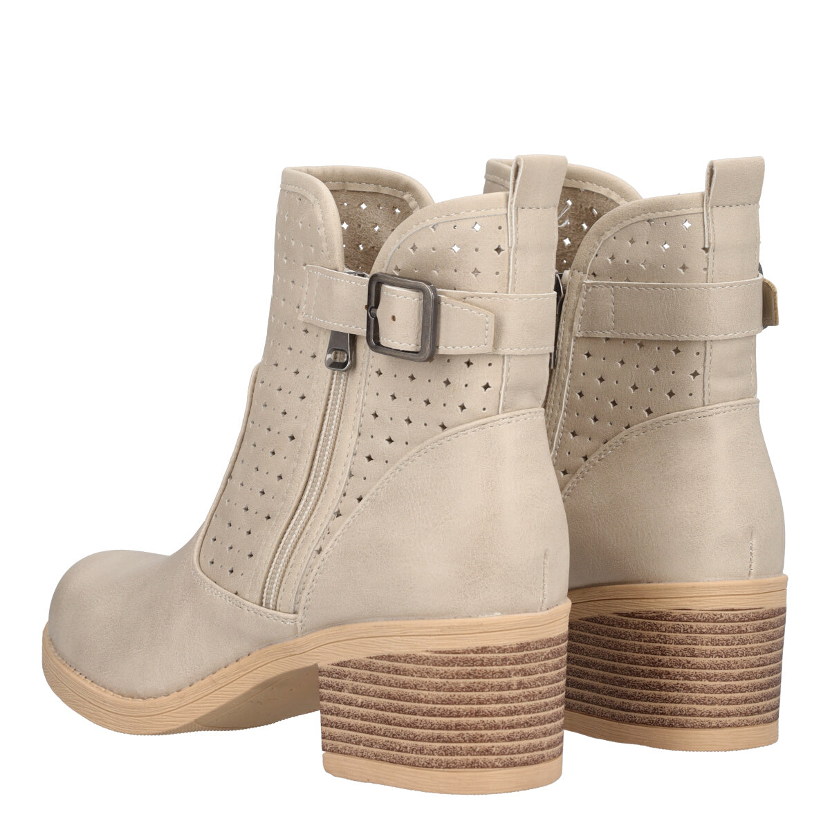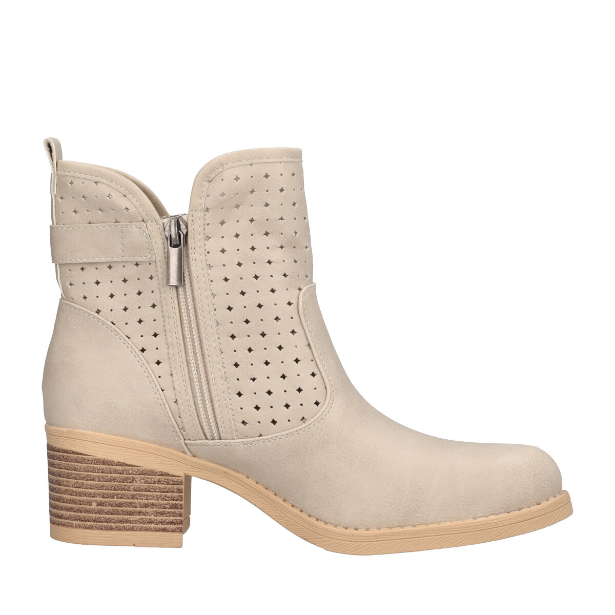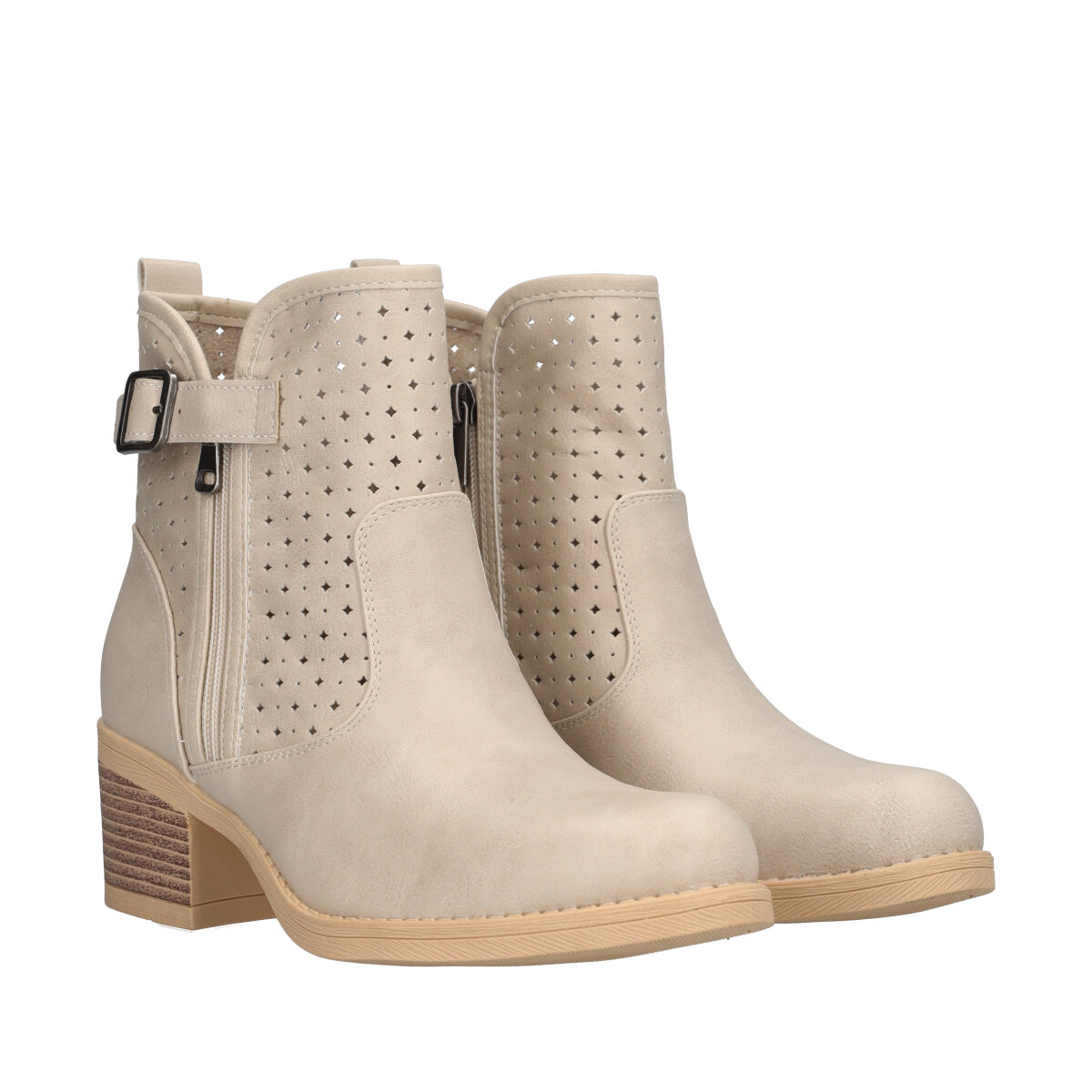 Il gambale traforato aggiunge un tocco di freschezza, perfetto per i giorni più caldi, mentre la zip laterale esterna che percorre tutto il gambale rende l'indosso facile e veloce, adattandosi perfettamente alla forma del piede. Il cinturino intorno alla caviglia, delicatamente posizionato, dona un dettaglio raffinato e sicuro.
