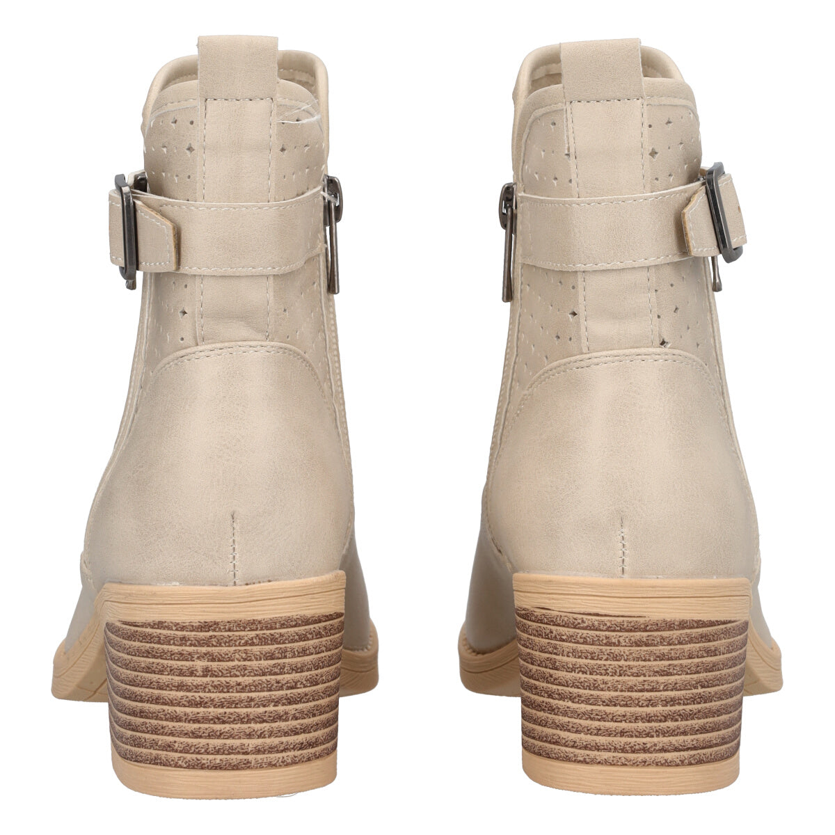 Un'altra zip, puramente decorativa e situata all'interno del gambale, aggiunge un elemento di stile extra, completando il look con un tocco moderno. Questo stivaletto è perfetto per un look chic e casual, ideale da abbinare a vari outfit estivi.