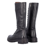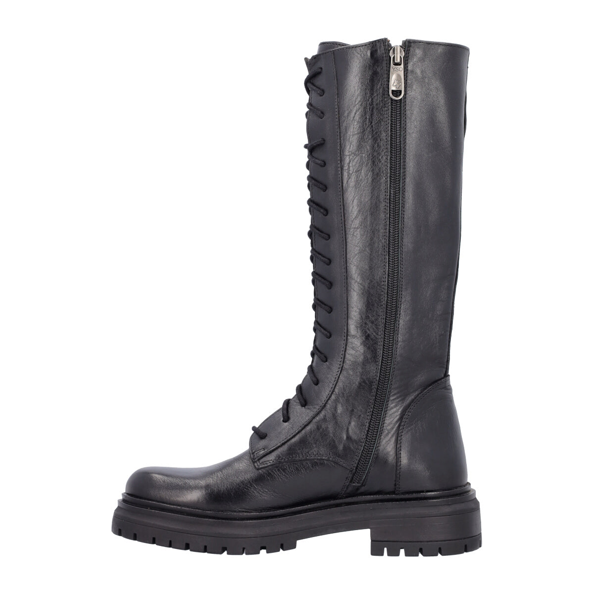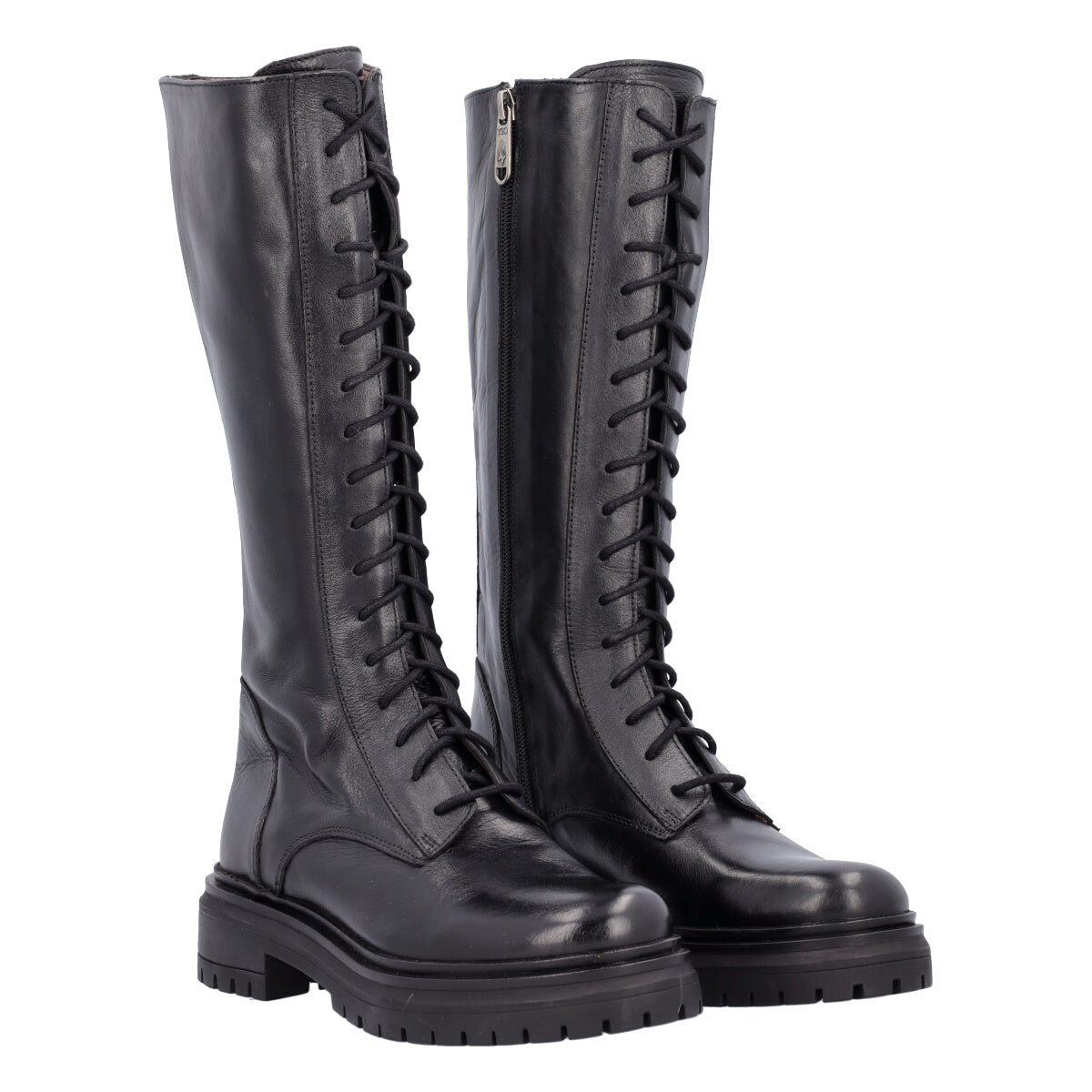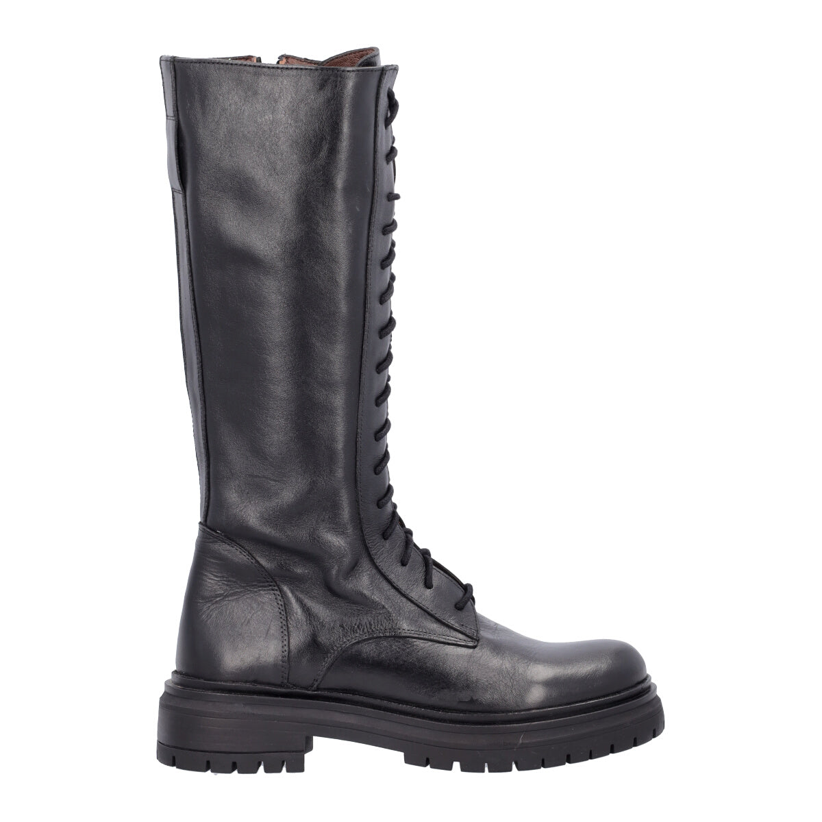 Anfibio alto da donna in pelle con allacciatura frontale regolabile e zip laterale che facilita la calzata. Fodera interna e sottopiede in pelle. Suola in gomma con battistrada a carrarmato. Altezza gambale: 31 cm Altezza suola: 4 cm