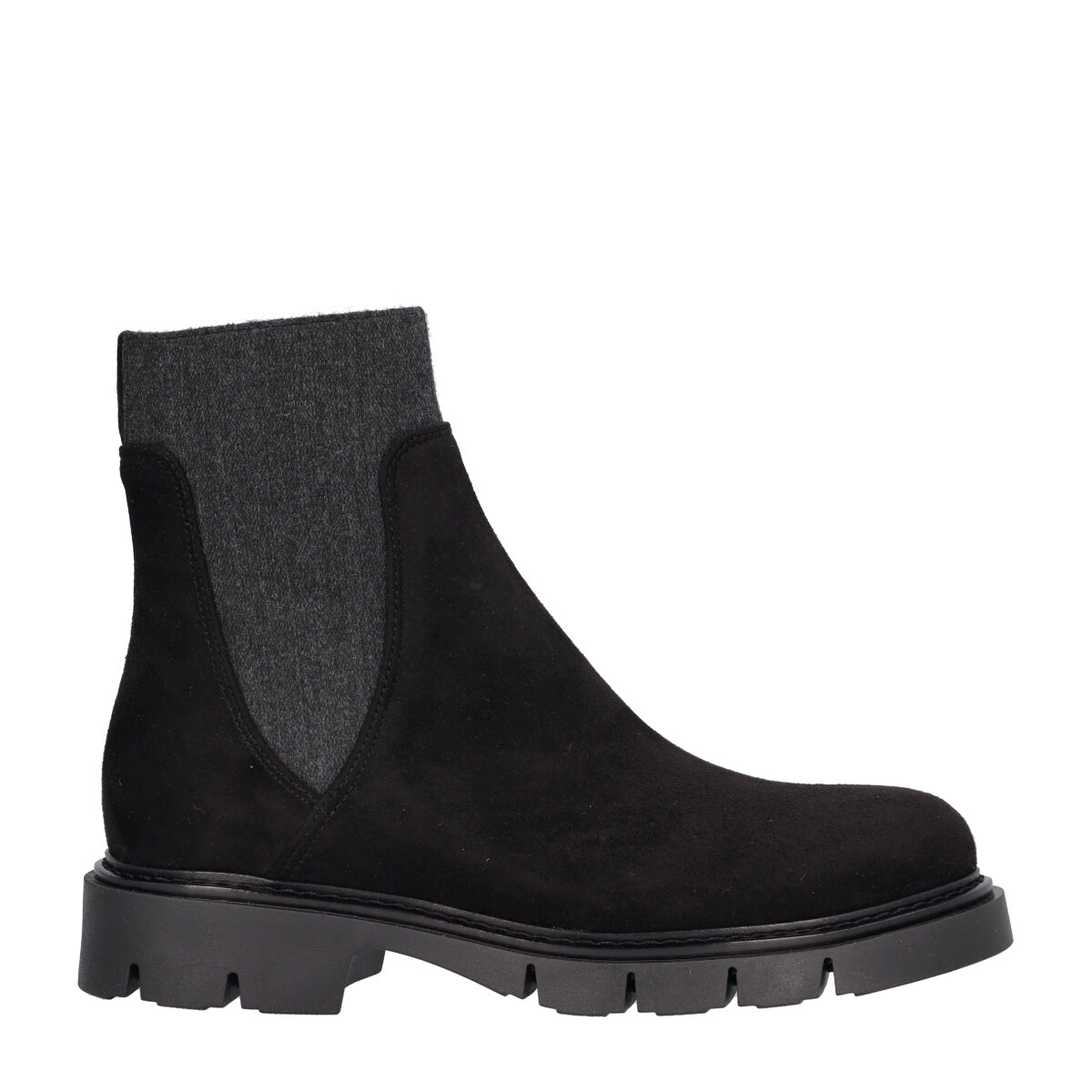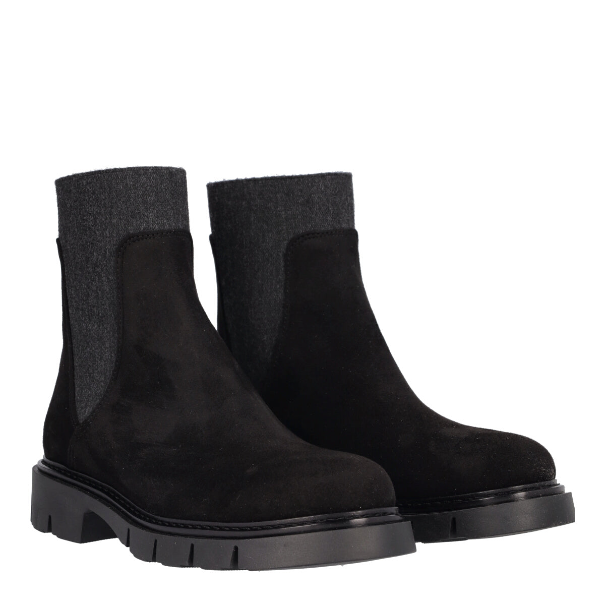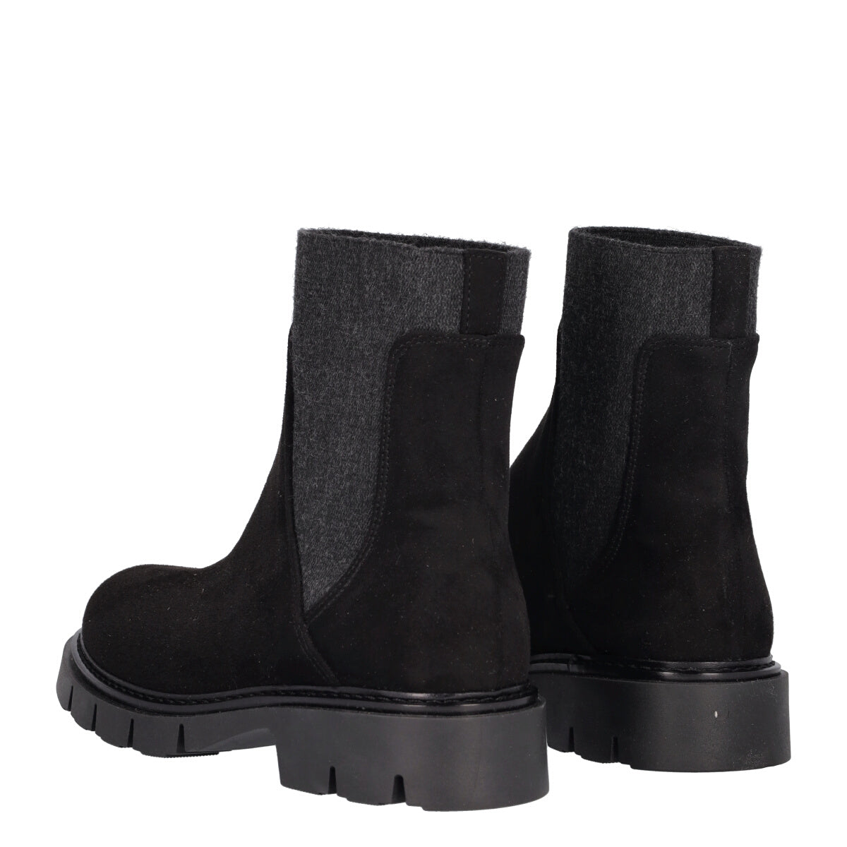 Gli stivaletti effetto scamosciato del brand Du Simon con elastico alla caviglia combinano eleganza e praticità per la stagione fredda. La tomaia effetto scamosciato offre un look raffinato e versatile, mentre l'elastico alla caviglia in caldo tessuto assicura una calzata confortevole e una maggiore protezione dal freddo. La suola in gomma garantisce un'ottima aderenza e durabilità, rendendo questi stivaletti perfetti per un uso quotidiano con stile e comfort. Ideali per chi cerca calzature che uniscono design sofisticato e funzionalità.