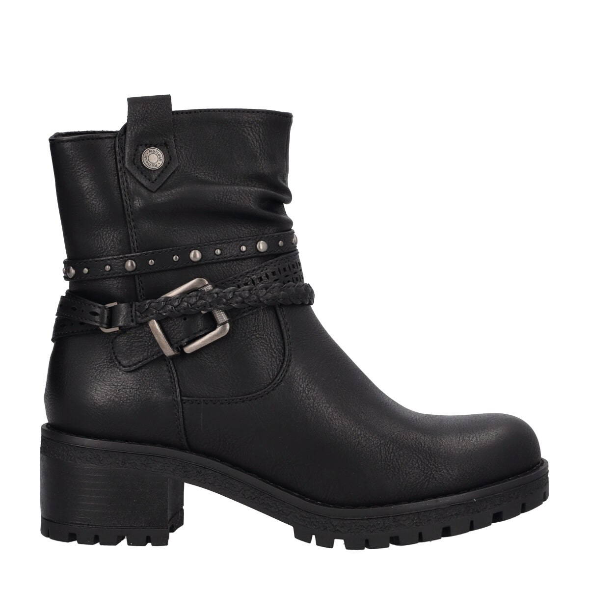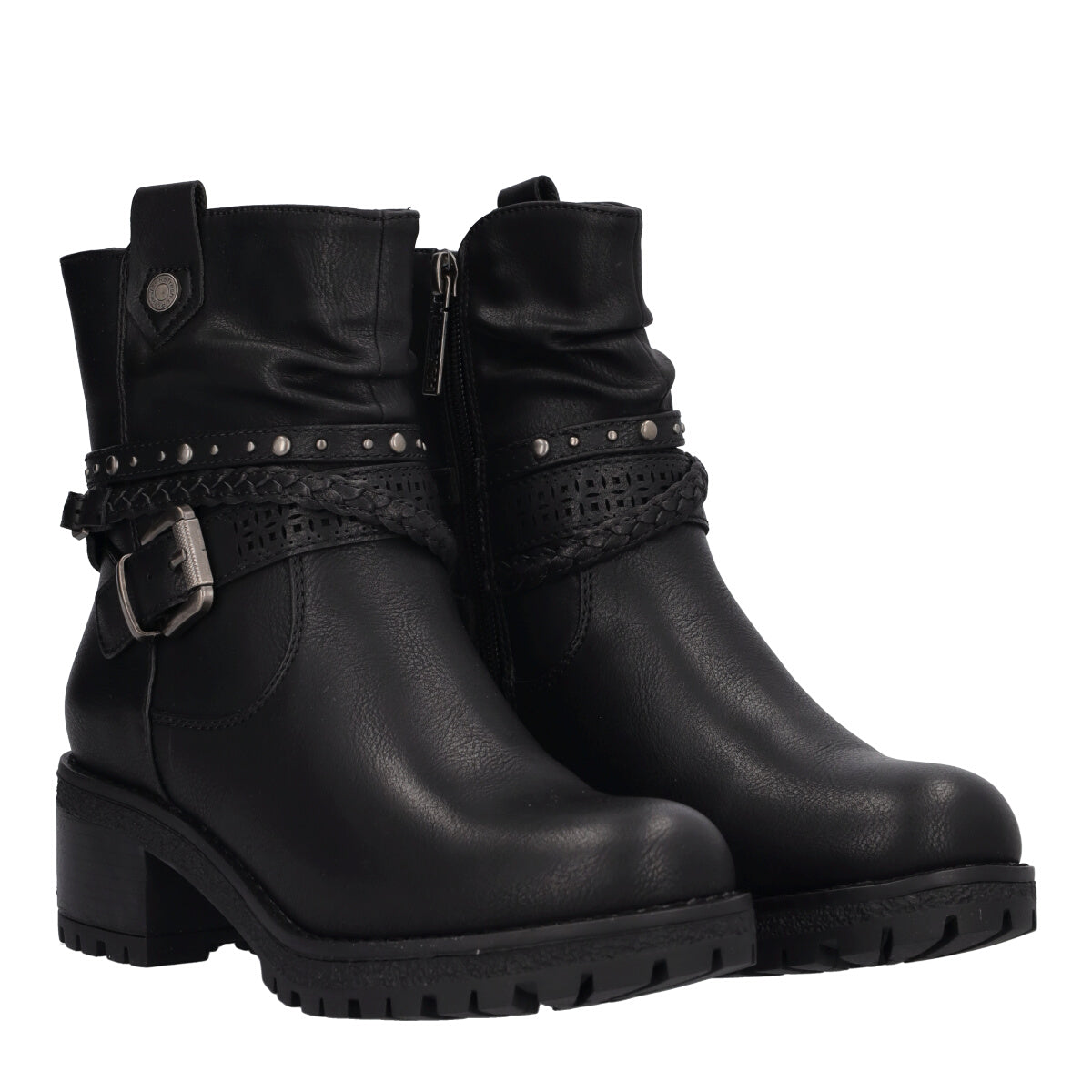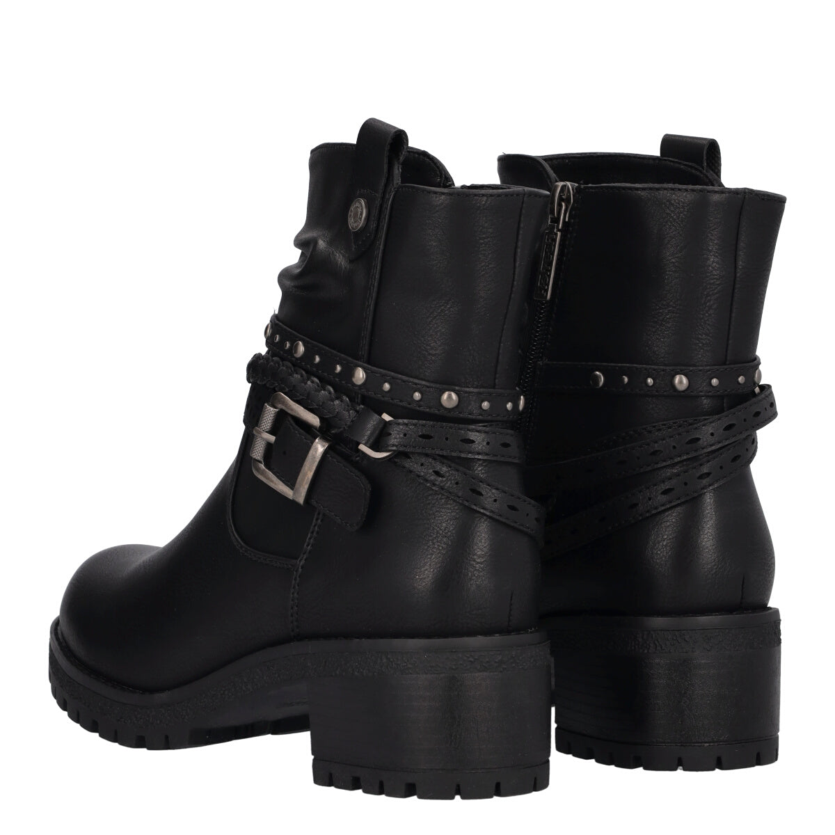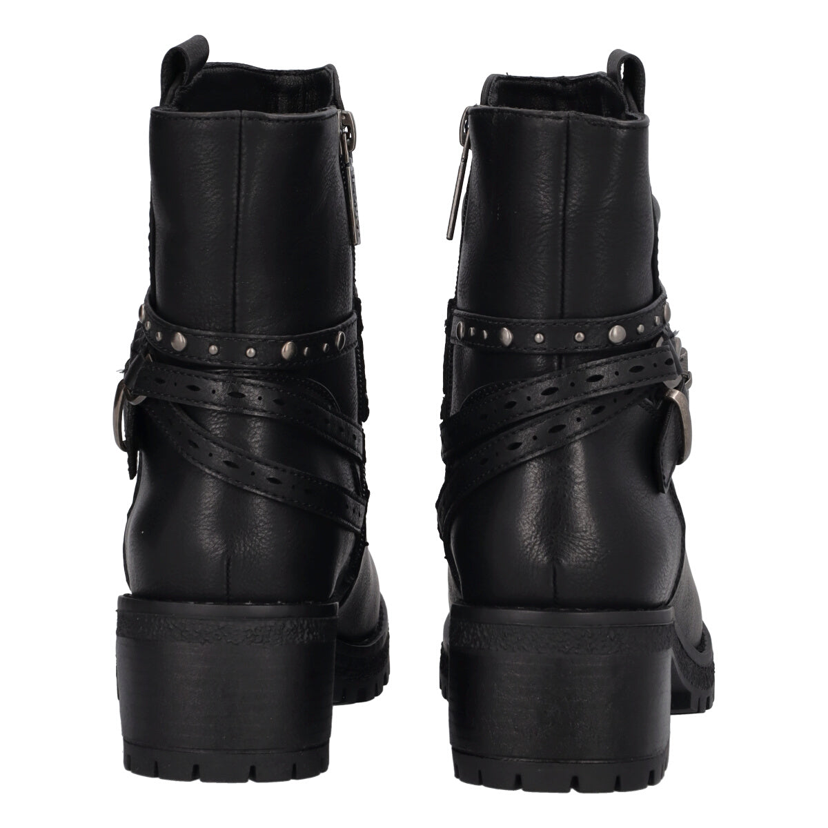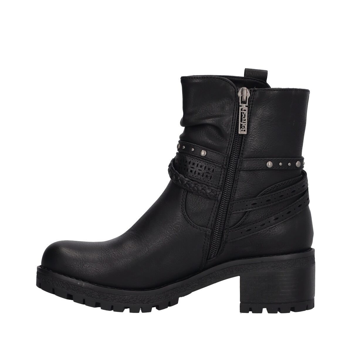 Stivaletti da donna della marca Refresh. Realizzato in materiale simile alla pelle. Fibbie decorative e chisura tramite zip. Suola in gomma antiscivolo. Il classico stivaletto militare che ti metterà con tutto. Questo modello ha ottenuto il certificato vegano dall'Organizzazione mondiale PETA (Organizzazione dei diritti degli animali).